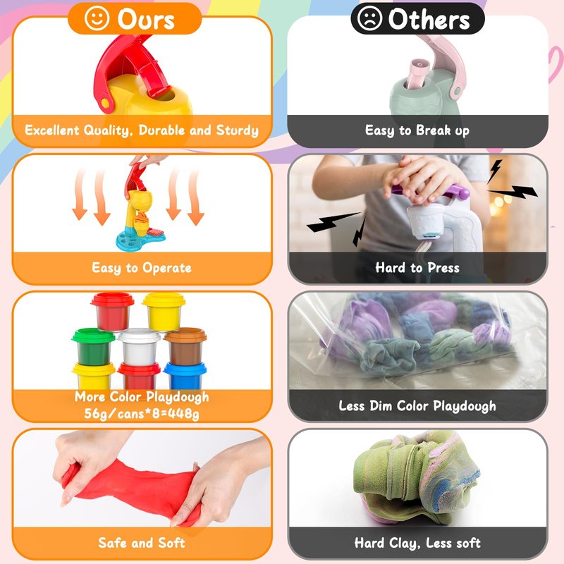- Much Benefits for Kids:This DIY playdough kids toys is designed with great entertainment and educational functions, which is good for excerising kids'color cognition ability,hand-eye coordination ability,inspiring imagination and creativity,aslo good for enchaning children's friendship and parent-child relationship