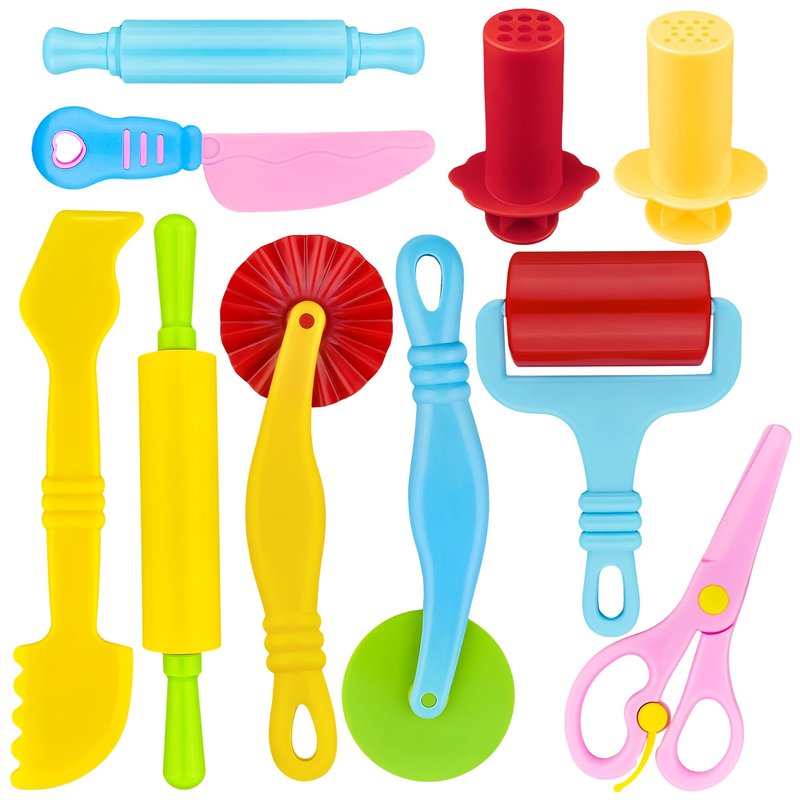 - Fun & Creative: This colourful 10-piece plastic play dough tool set will bring hours of creativity and fun to toddlers and early scholars. Ideal for early learning classrooms or daycares. Note:Clay is not included. Color will be random.