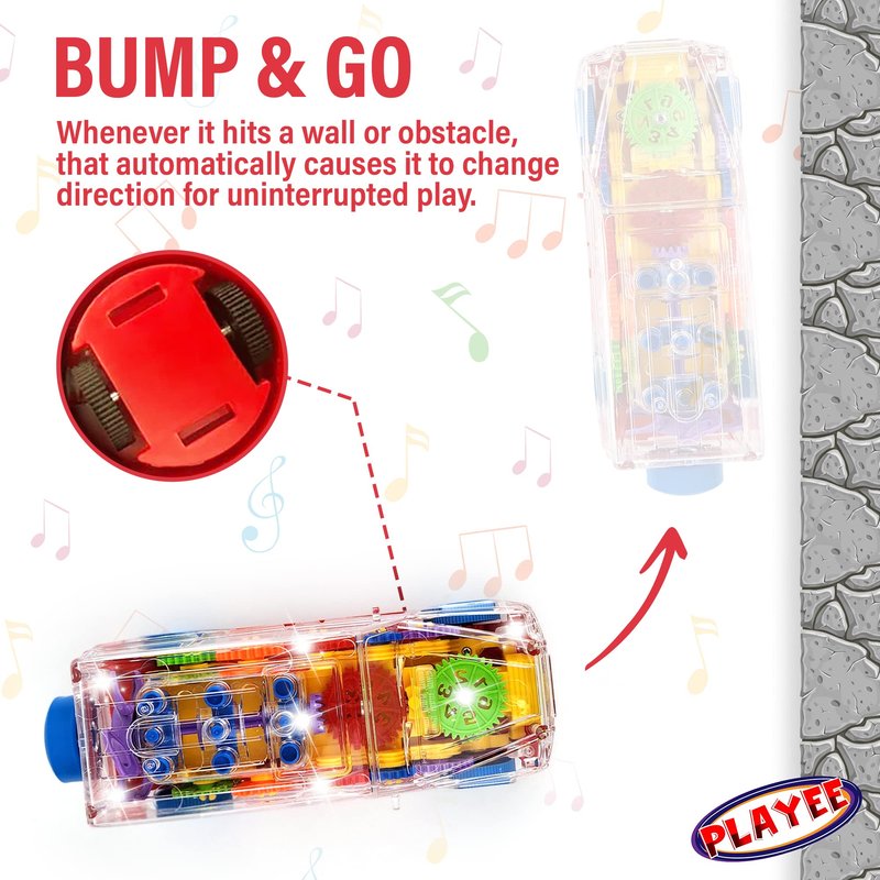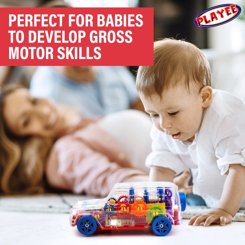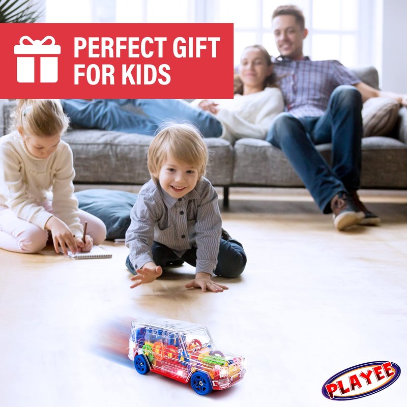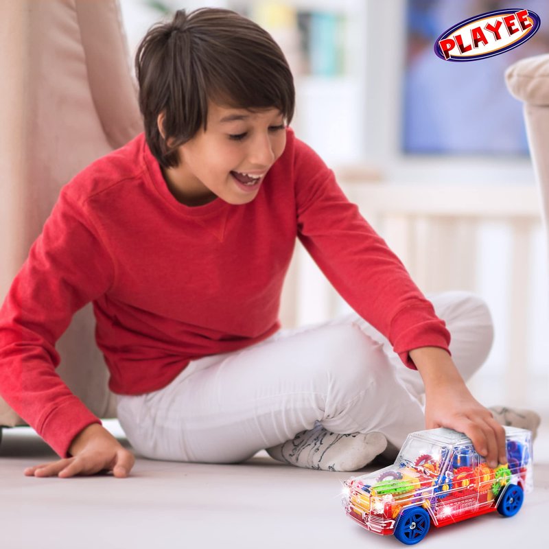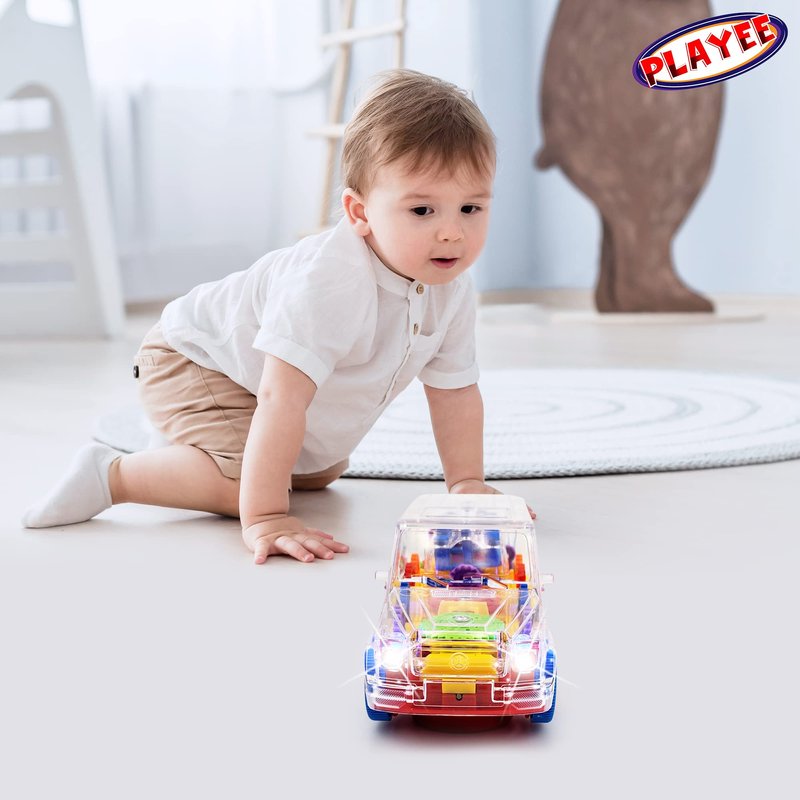 Playee SUV Bump and Go Off Road Vehicle with Moving Gears – Light Up Transparent Toy with Music and LED Lights – 8 Inch Sensory Toy for Toddlers and Kids – Birthday Gift Idea
