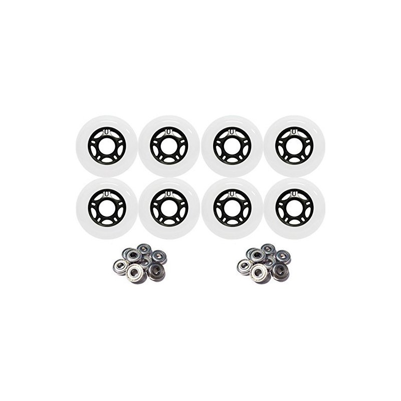 Player's Choice Outdoor Inline Skate Wheels 89a - Choose Size, Color, and Bearings (White, 80mm 8-Pk, ABEC 9 Bearings)