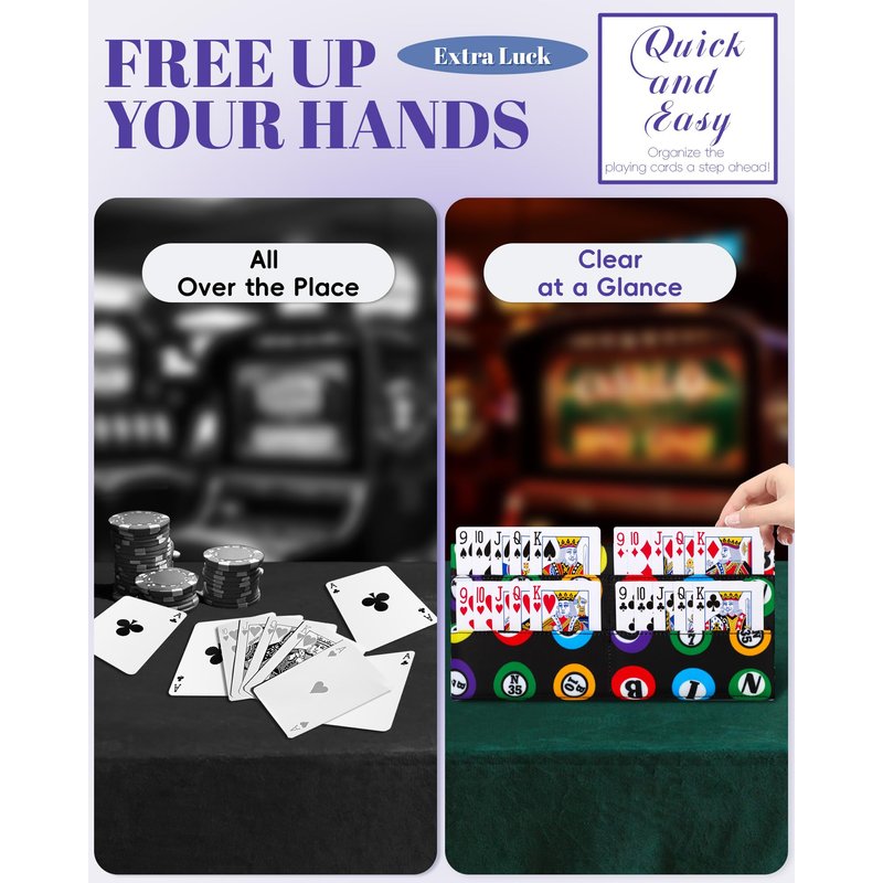 - FREE YOUR HANDS -- This card holder was born for all kinds of playing card games and bingo pull tabs or even Mexican loteria cards!