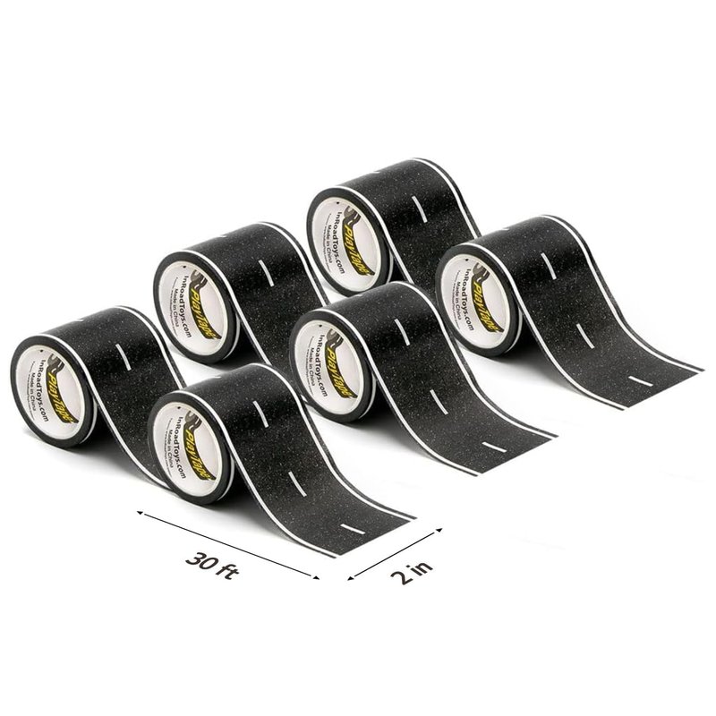 PlayTape is perfect for building your own world of roads, highways, and racetracks. This product includes a roll of 2 inch wide x 30 feet long PlayTape Road Tape. PlayTape is made of low tack tape. Just unroll PlayTape and stick to any flat surface. PlayTape is easy to tear by hand, reposition, and join with other PlayTape products. This product is suitable for ages 3 and up.
