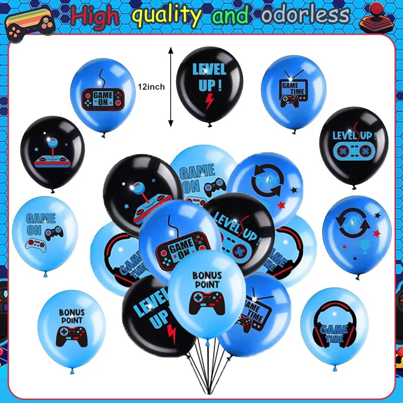 - High Quality Material: Our gamer party decorations balloons are made from premium and durable latex, being 100% safe and non-toxic for kids.The banner,tablecloth,foil baloons and so on are high quality too,which can ensure you a successful party.WARM NOTE: Please do not overflate the balloons.