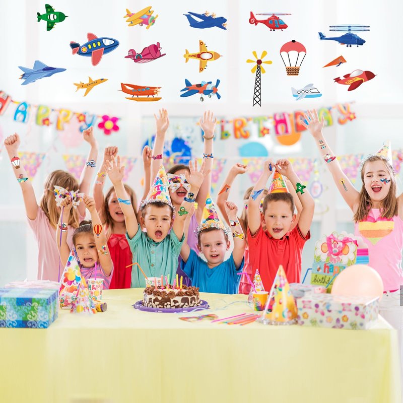 PLORBACH 10 Sheets Airplane Temporary Tattoos, Birthday Party Decorations Airplane Party Favors Airplane Party Supplies for Kids