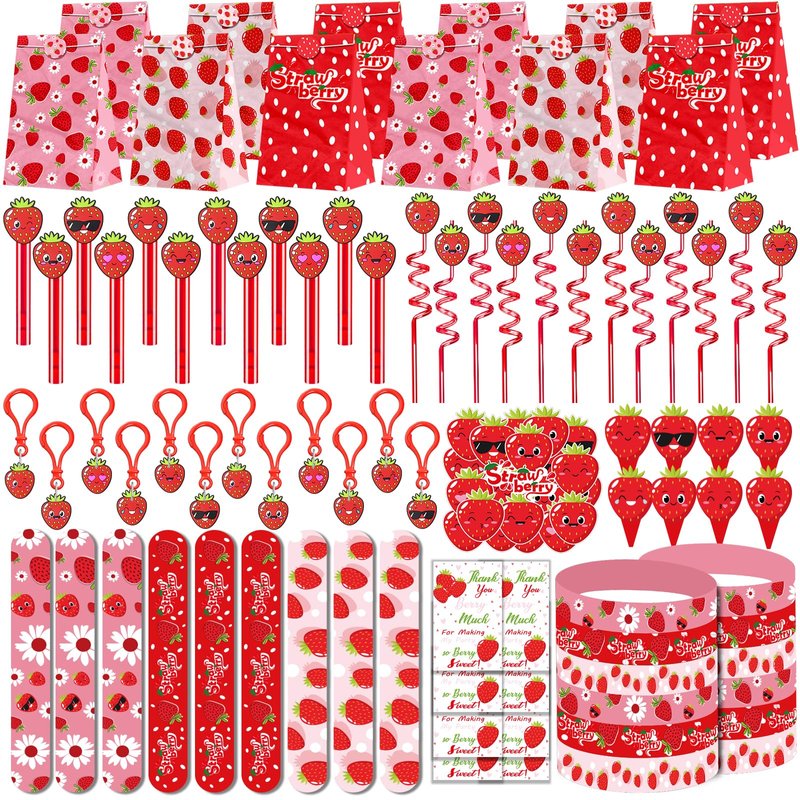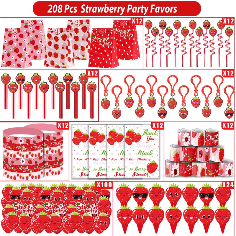• All In One Party Favors: Includes Strawberry party essentials, making it a one-stop solution for all your party needs, Save Time and Money: Say goodbye to shopping around for different party favors.