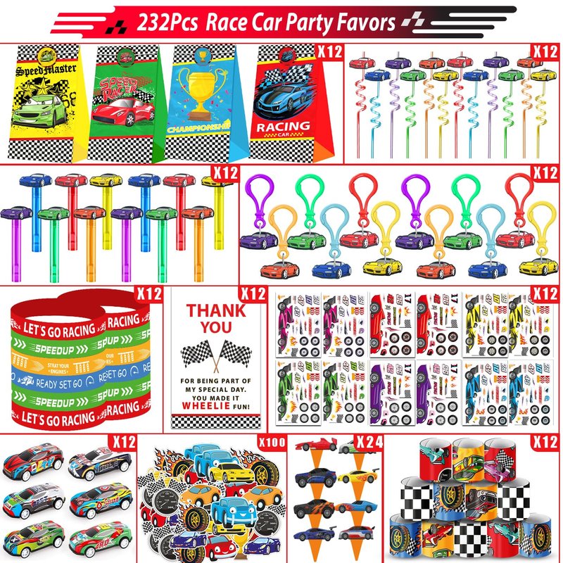 232PCS Race Car Birthday Party Favors Decorations Supplies Goodie Bag Stuffer Pinata Filler, Cars Themed Favors for Wheel Birthday Decorations