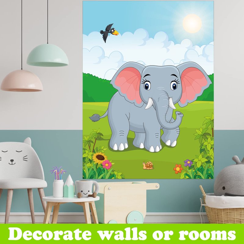 Pin the Nose on the Elephant Party Game with 24Pcs Elephant Nose Stickers for Kids Birthday Party Supplies, Animal Party Carnival Party Supplies