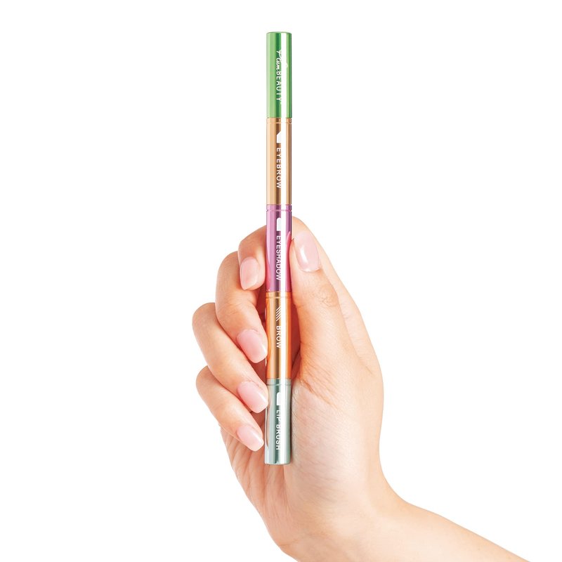 - Includes eyebrow brush, eyeshadow brush, brow shaper and lip brush