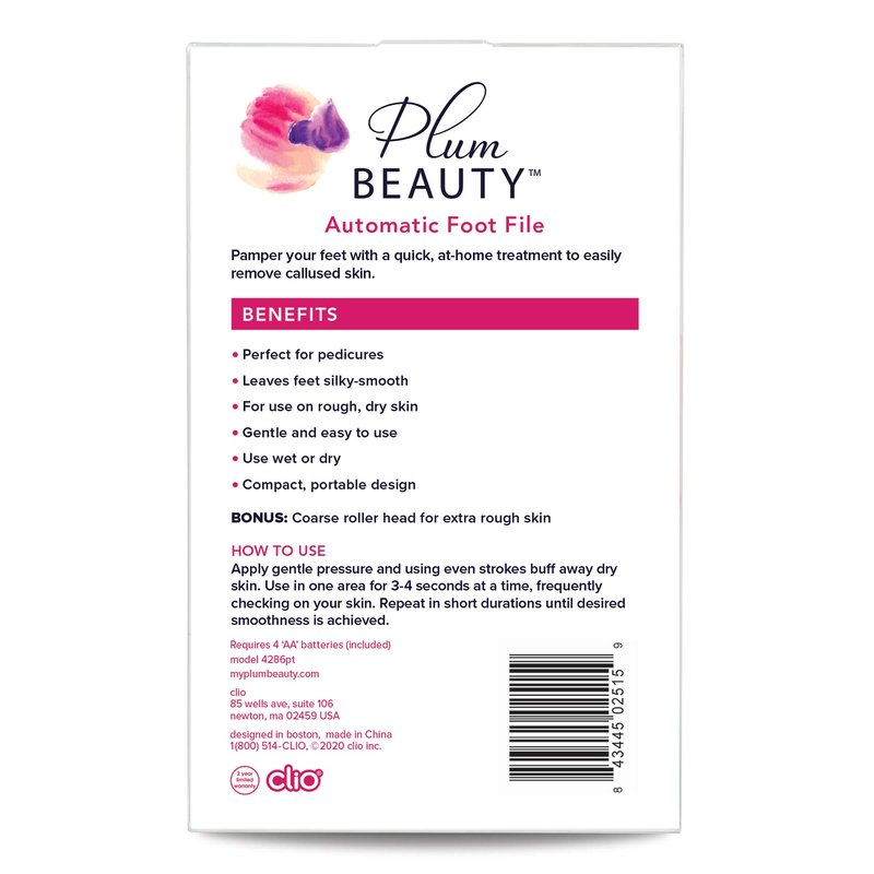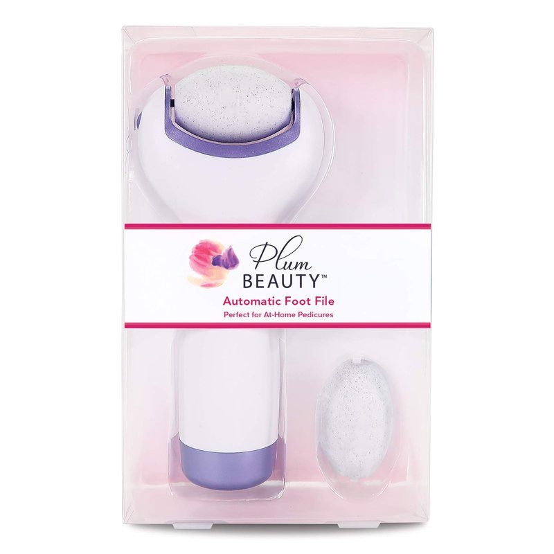 Plum Beauty Automatic Foot File, Perfect for Pedicure, Callus Removal, Foot Scrub, Removes Rough Skin, Purple and White