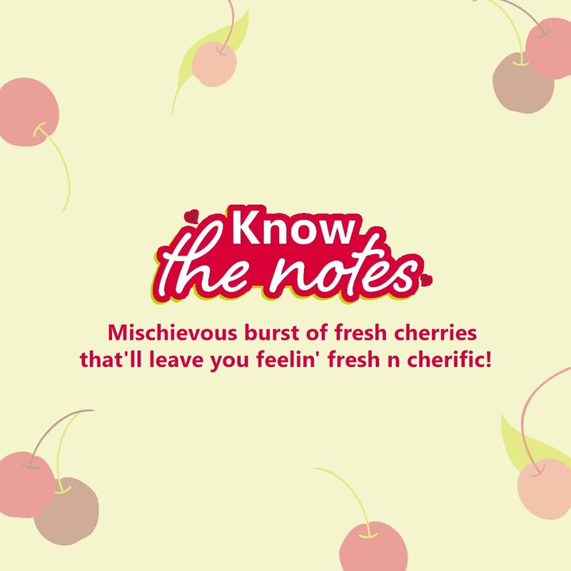"No ordinary fruit smooth-ie! Feel the sweet sweet cherry lovin'. With gentle, cellulose beads & natural walnut shell powder to transport you to a smooth city! "