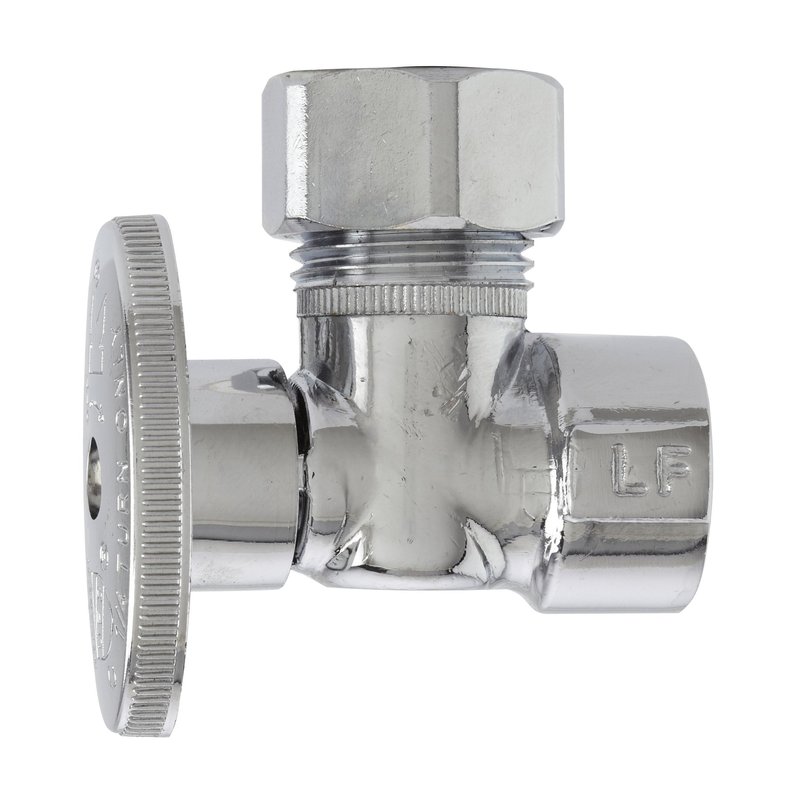 Plumb Pak PP51-1PCLF 1/4 Turn Angle Shut-Off Valve, 1/2 X 1/2 In, Fip X Od, Body, Chrome Plated, 1/2" x 1/2"