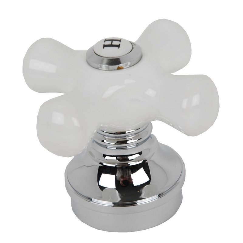 - Porcelain cross handles, chrome knobs