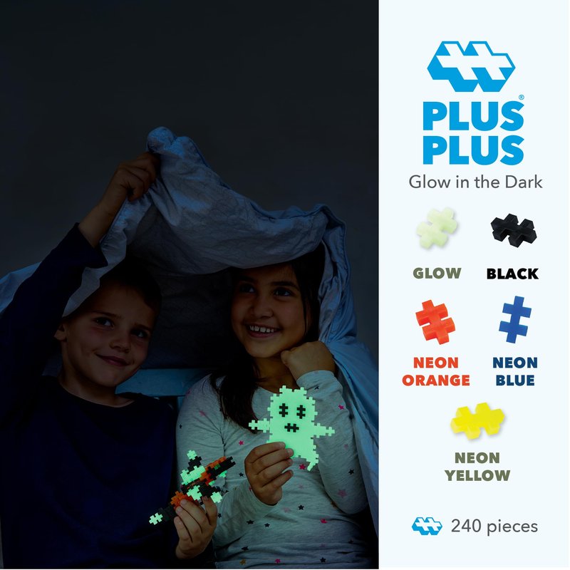 - NEON & GLOW! CONNECT IN EVERY DIRECTION: Open play set includes: 240 pieces (Glow, Neon Blue, Neon Yellow, Neon Orange, Black) and an Idea Guide Booklet for building. Plus-Plus pieces measures .75 x. 5".
