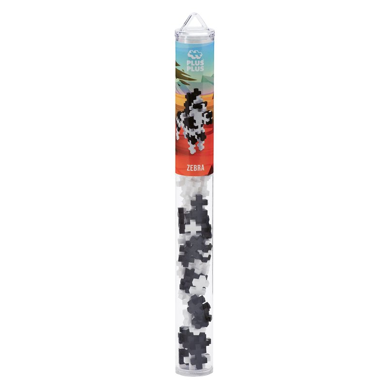 Plus Plus 3D Animal Figure Building Block Set, 70 Mini Interlocking Puzzle Pieces, Fun Stem Toys for Kids - Zebra Maker Tube