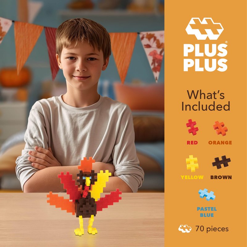 - Create Your Own Turkey: Get festive by building a 3D Turkey! This toy set includes all the colorful Plus-Plus pieces you need to create a holiday symbol. Great for Thanksgiving!