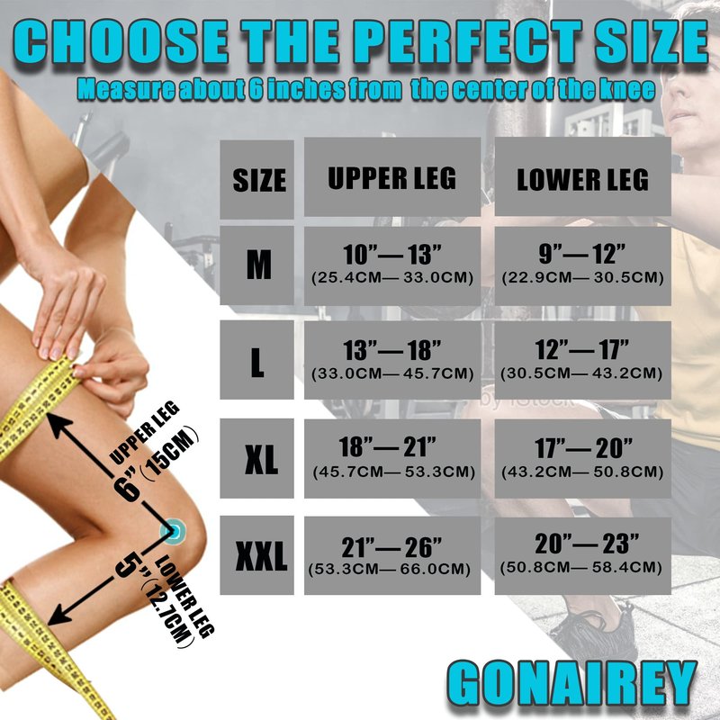 To find the right size for you, just measure your leg circumference 4 inches above the knee and use your leg circumference data against the size chart to choose the right size for your knee brace.