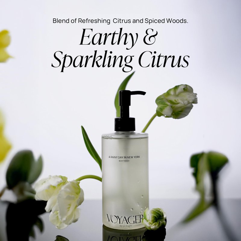 Pobam VOYAGER A Rainy day in New York Body Wash, Citrus with Basil, Woody Vetiver and Cloves, Forest & Fresh Scent, 10.14 Fl. Oz./300ml