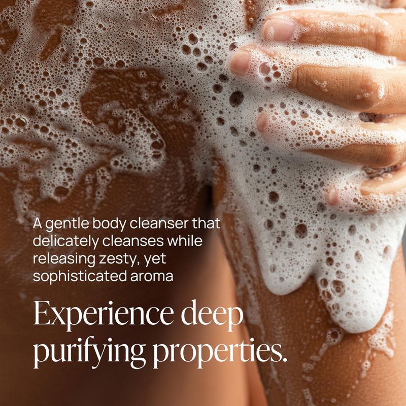 Rejuvenating body wash with a luxurious blend of fresh yuzu, invigorating basil, earthy vetiver and a warm, woody after scent. This unique formulation transforms your shower into a serene escape, perfect for those seeking a touch of nature in their daily routine, leaving your skin feeling refreshed, revitalized and subtly scented with an exquisite aroma that lingers after you rinse.