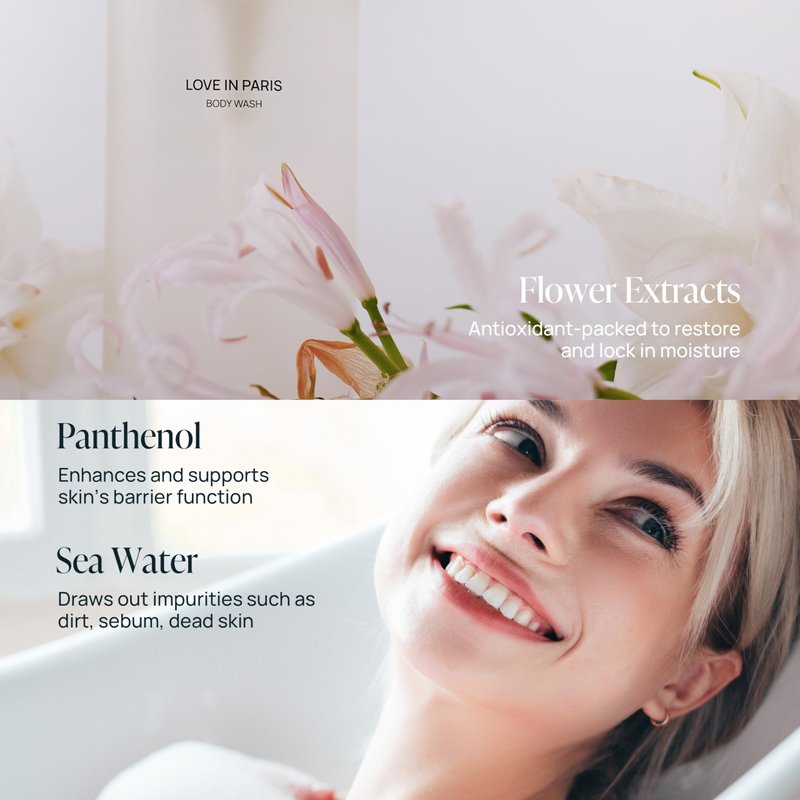 - HYDRATING BODY WASH: With skin-loving, moisture-loving pH of 5.8, Pobam's Love In Paris Body Wash is designed and formulated for everybody and everday use.