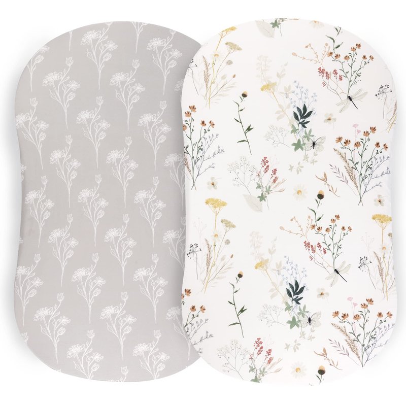 Pobibaby - 2 Pack Premium Bassinet Sheets for Standard Bassinets - Ultra-Soft Jersey Knit, Stylish Floral Pattern, Safe and Snug for Baby (Wildflower)