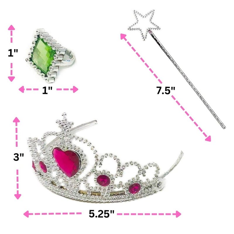 - THEMED DRESS-UP EXTRAVAGANZA: Dive into the world of fantasy with our themed dress-up kit. From charming tiaras to pretty wands to jeweled rings, the set is a treasure trove of princess-themed charm. Let your child explore the magic of imaginative play and create unforgettable memories.