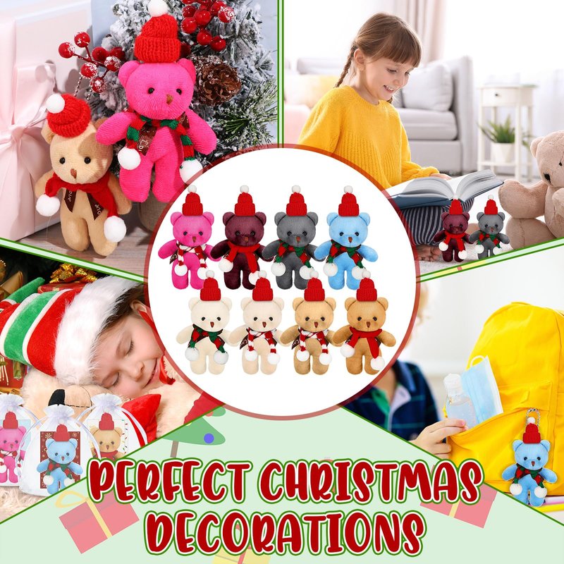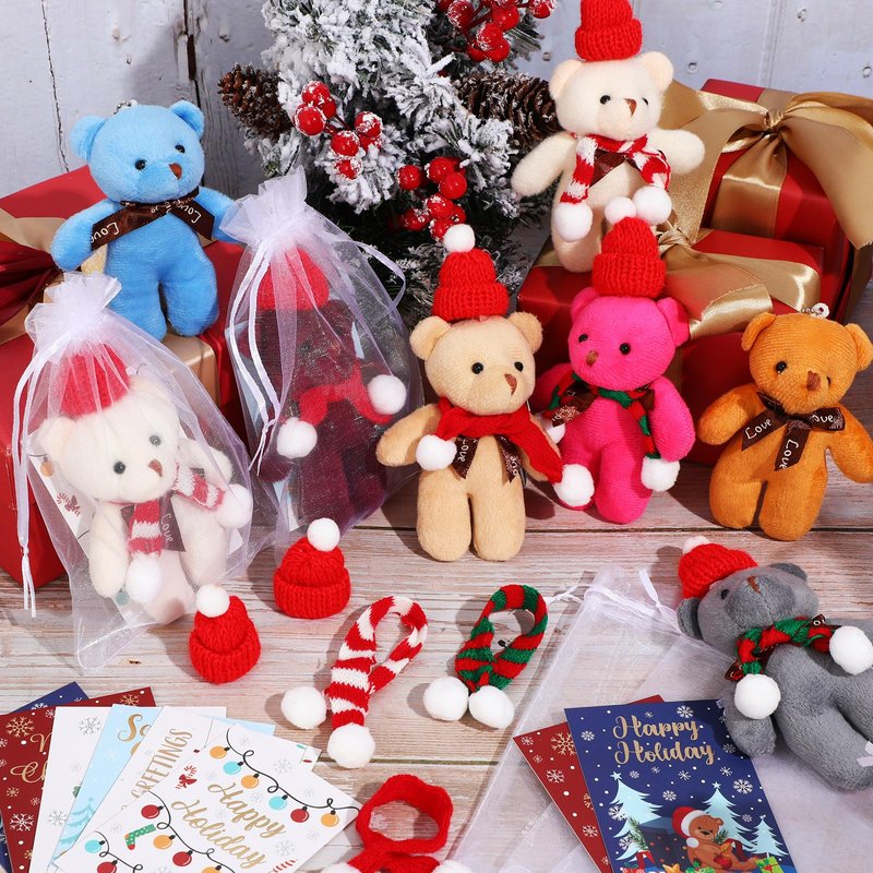 • Christmas Plush Bear Set: the package comes with 24 pieces of plush bear ornaments, 24 pieces of Santa hat, 24 pieces of scarves, 24 pieces of organza bags and 24 pieces of gift cards, a total of 24 sets; The nice combination and sufficient quantity can meet your Christmas gifting needs
