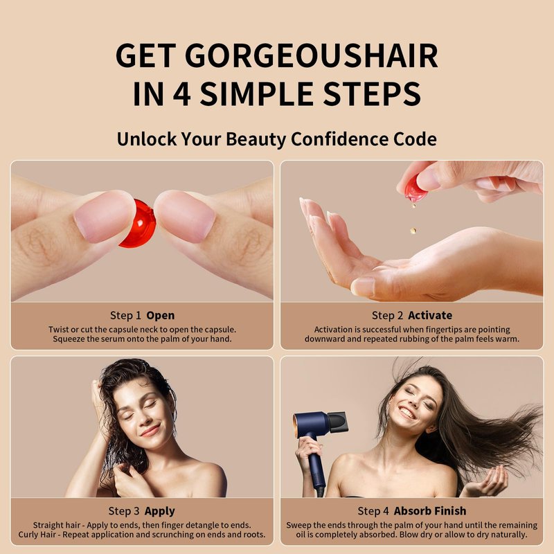 - Convenient Hair Nourishing Capsules: The capsule formula is easy to use, simply place a few drops of the concentrated oil in the palm of your hand and it's easy to apply and carry around. 50 capsules will nourish your hair for a longer period of time.