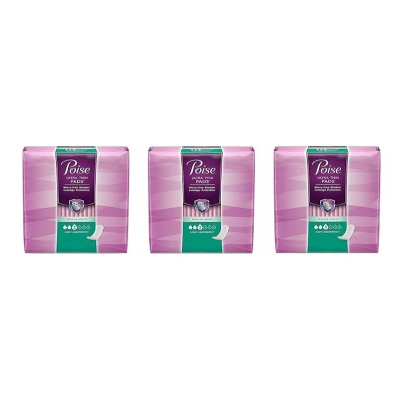 Poise Ultra Thin Incontinence Pads, Light Absorbency, Regular, 30 Count (Pack of 3)