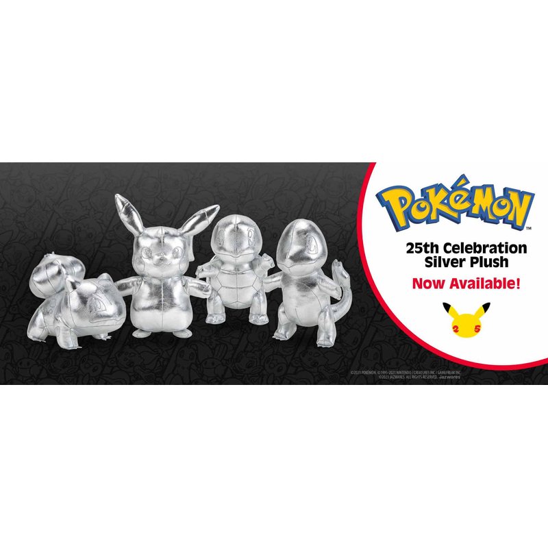 - Celebrate the 25th Anniversary of Pokemon with the cute and cuddly 8" Pokémon silver Charmander, Bulbasaur, and Squirtle Plush!
