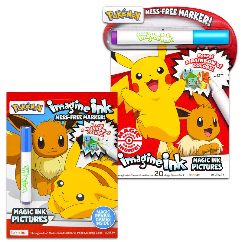 - This Pokemon coloring book set includes 2 Pokemon Imagine Ink Mess-Free coloring books. Each Imagine Ink coloring book includes a magic invisible ink pen that reveals hidden games and pictures.