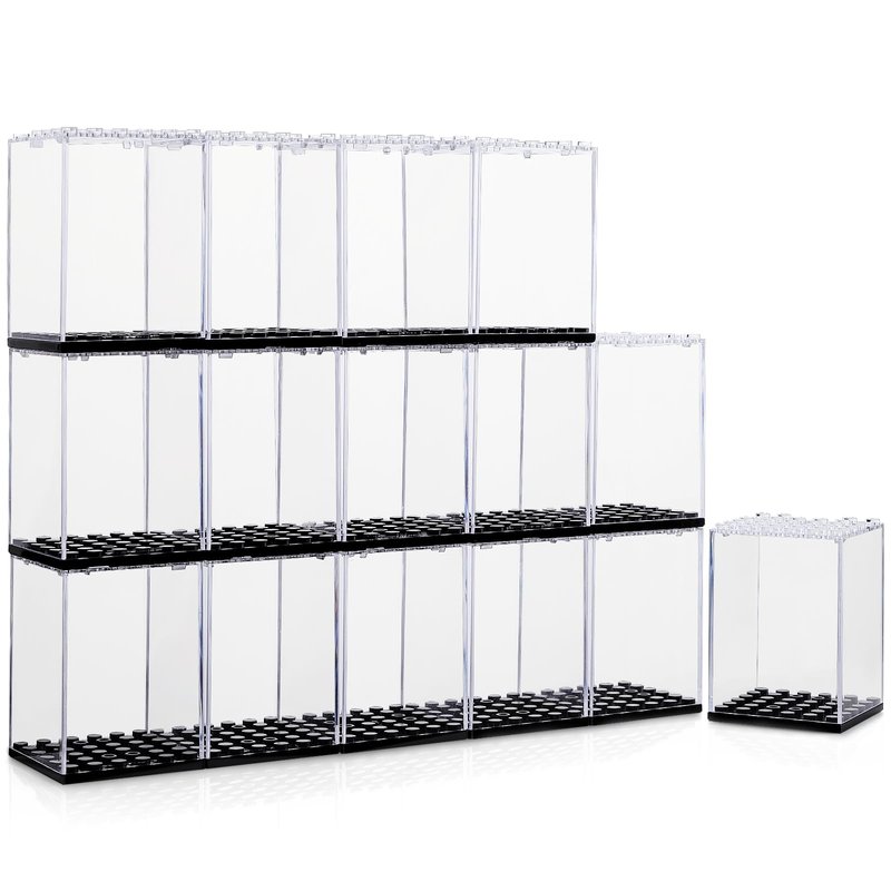 Pokiiulk 15 Pcs Clear Acrylic Minifigure Display Case - Display Box Storage Fit for Lego Minifigures and Action Figures Blocks for Kids and Adults (Black)