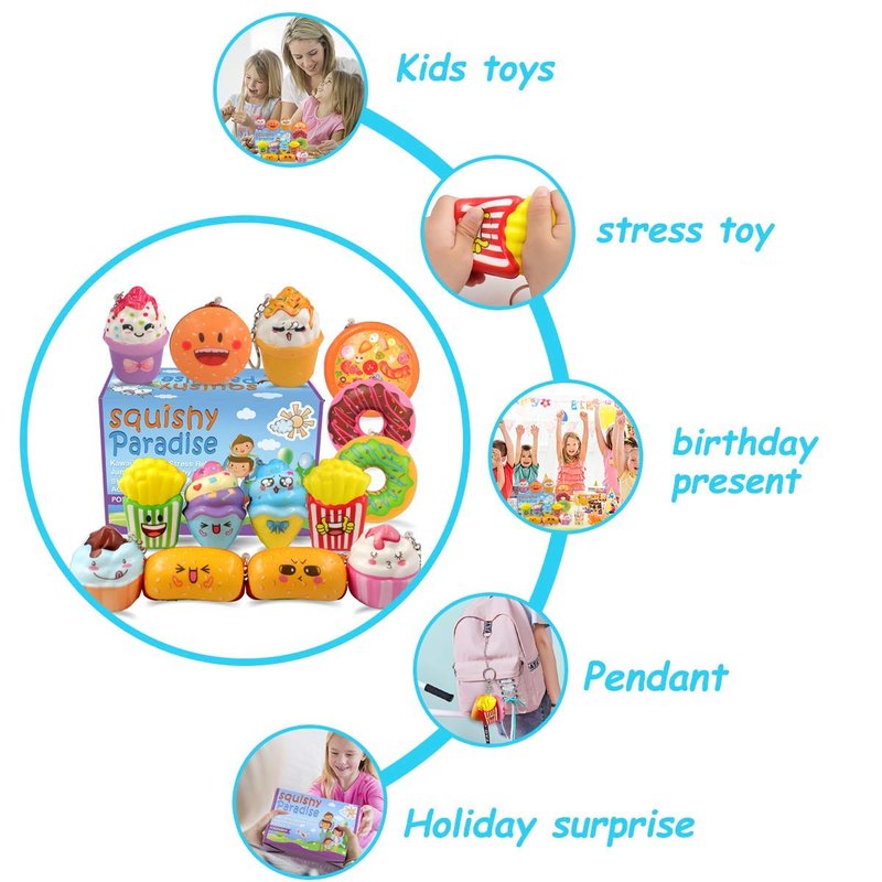 - Gift Box: All of food squishies are wrapped individual in gift box, The gift box can be used as birthday gift party favors much less expensive then purchasing them individually in a store.