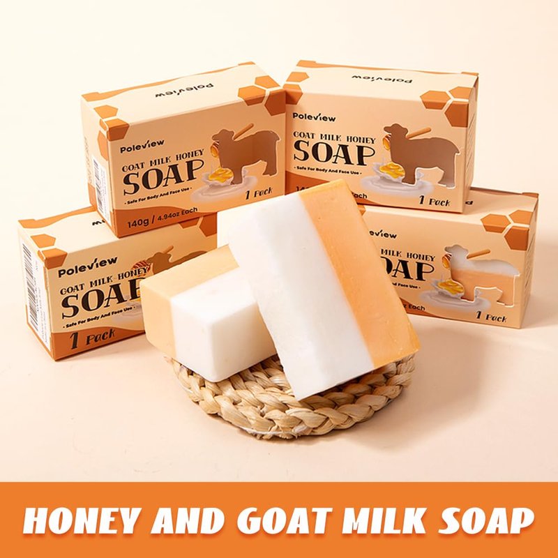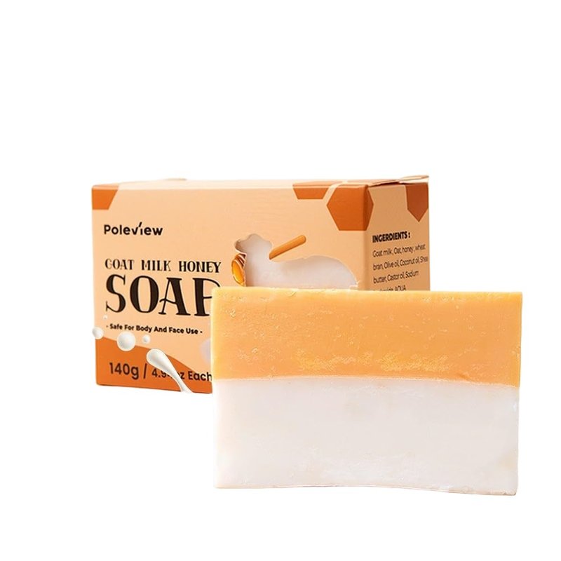Poleview Classic Honey & Goat Milk Soap, Soothes Dry Skin, Natural Shea Butter, Pack of 3 Bars,Handmade Bath Soaps, 4.94 oz (140g) each