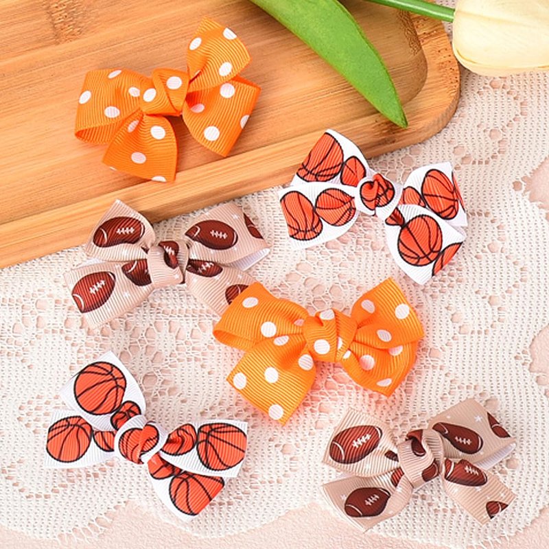 - Ribbon Bow Basketball Football Bows Clips for Girls Hair: Basketball bows for girls clip can shows your love for basketball and cheer for your favorite team, the pinwheel bows suit for toddlers gifts for bday family party that can dress up easily and look good, the ribbon bow can grip the hair very well for a whole day, even she was playing and running, not easy to take off and comfortable to wear, won't tug or snag her hair