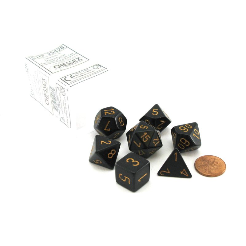 Polyhedral 7-Die Opaque Dice Set - Black with Gold