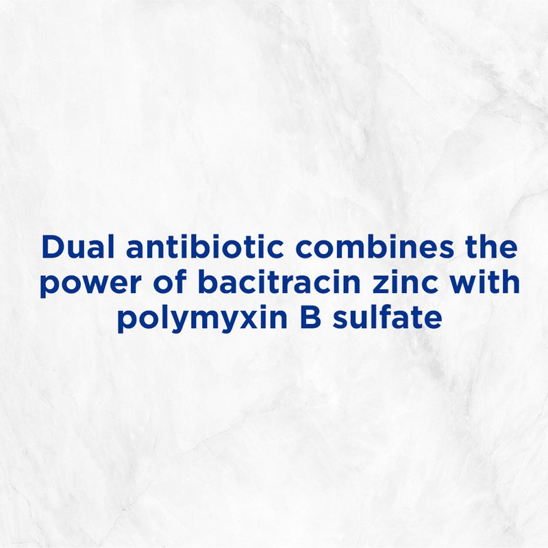 - From the #1 dermatologist-recommended first aid ointment for infection prevention, the unique neomycin-free formula combines the antibiotic power of the infection-fighting ingredients bacitracin zinc (500 units/gram) with polymyxin B sulfate (10,000 units/gram)