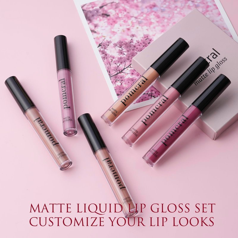 pomcral 6 Color Matte Lip gloss Sets Velvet Lip Glaze Moisturizing Waterproof Nude Lipgloss Tint Long Lasting Lipgloss Liquid Lipstick Kit