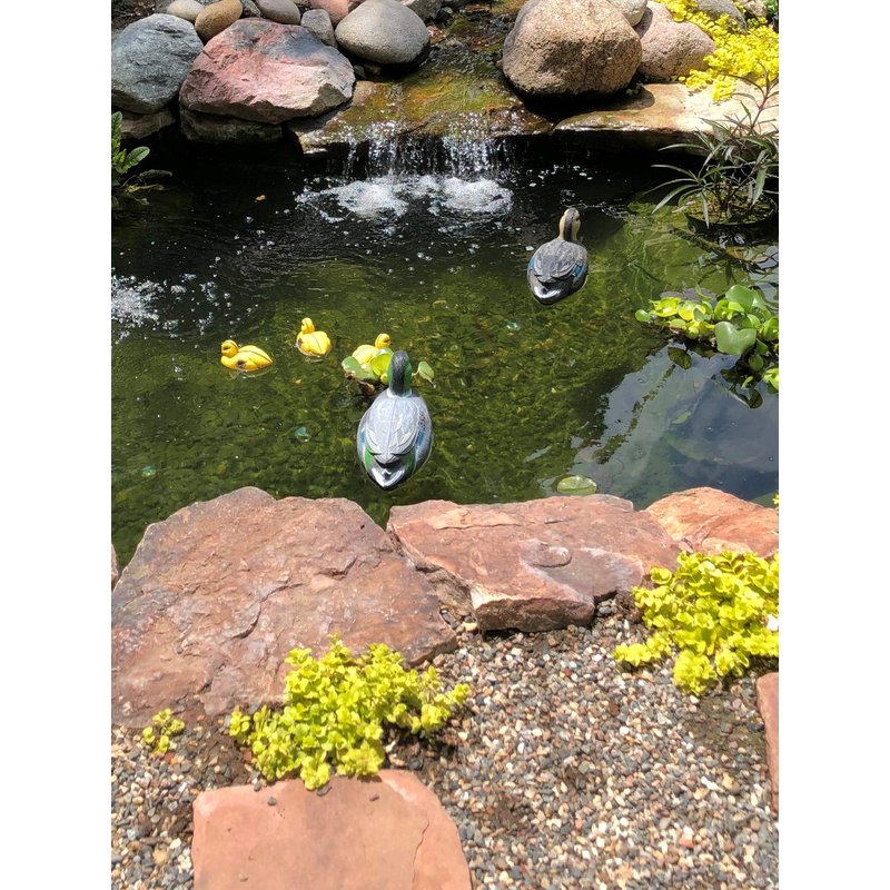 Floating Mallard Duck Decoy Family Pack is made of hard plastic with long lasting paint to make the family look realistic and last through the seasons. Each Floating Mallard Duck Decoy Family Pack comes complete with a full sized male, female duck and three ducklings. Each life-sized Mallard Duck Decoy is detailed painted to look life like. Weighted base or keel for stability to enable the pair to float in an upright position. Eyelets complete the base for tethering. The three floating duckling pond decoys are adorable yellow replica ducklings that are painted with realistic markings and are made of blow-molded hard plastic. The floating ducklings have a counter weight at the base to keep them upright. Eyelets complete the base for tethering. Made of hard wearing materials that will look great in any pond, pool or water garden! Floating Mallard Duck Decoy Family Pack is perfect for decorations, alternatively attach a sturdy cord to the holes & the other end to your pump; to enable you to hook your pump out with ease! Floating Mallard Duck Decoy Family Pack will add color to any pond! They are perfect for decorations, alternatively attach a sturdy cord to the holes & the other end to your pump; to enable you to hook your pump out with ease! Pack of three floating yellow duckling decoys with parents. Will add personality and color, as well as possibly help attract the real thing!! PondH2o quality branding!