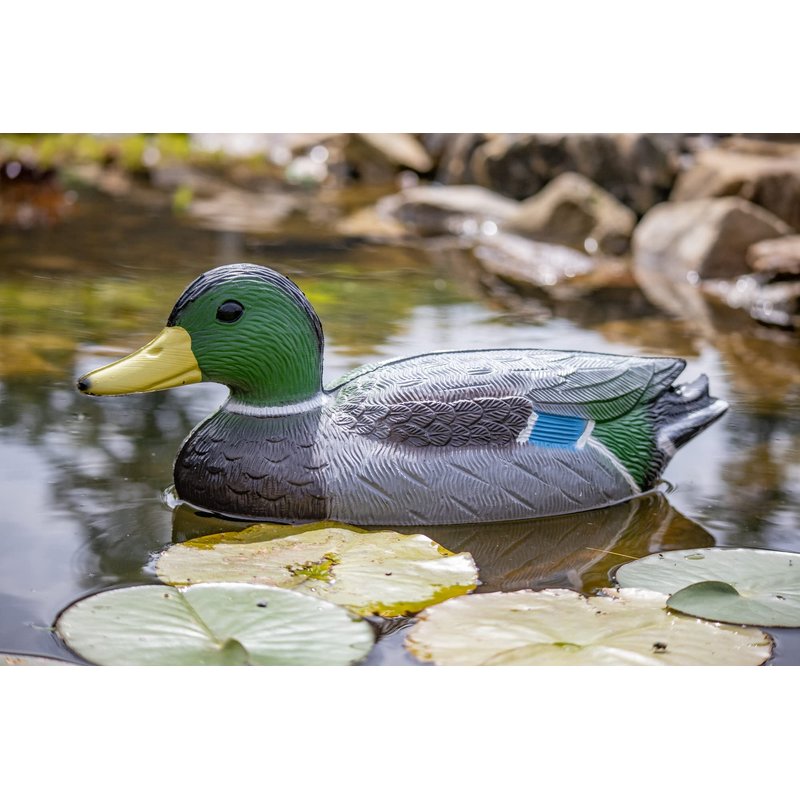 - One (1) - Lifelike Floating Polyresin Mallard Pair, Pack of two (2) Mallard type Ducks. Pack Contains a Male and Female type. Floating with Securing eye loop. Each Mallard Size is 14 Inch Tall x 6 Inch Wide x 6 Inch Deep. Hard Wearing Materials. Attractive Realistic Colors