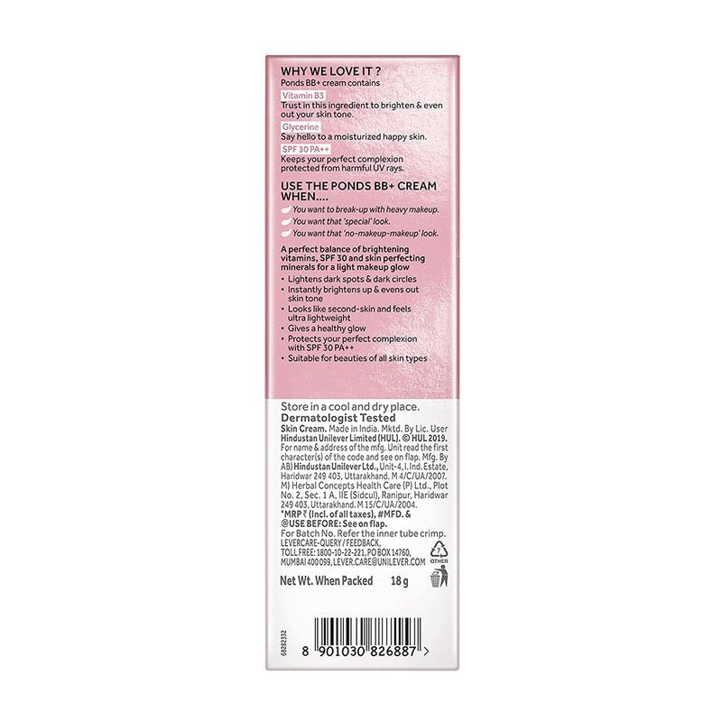 - Pond's BB+ Cream, Instant Spot Coverage + Natural Glow, 01 Original, 18 g