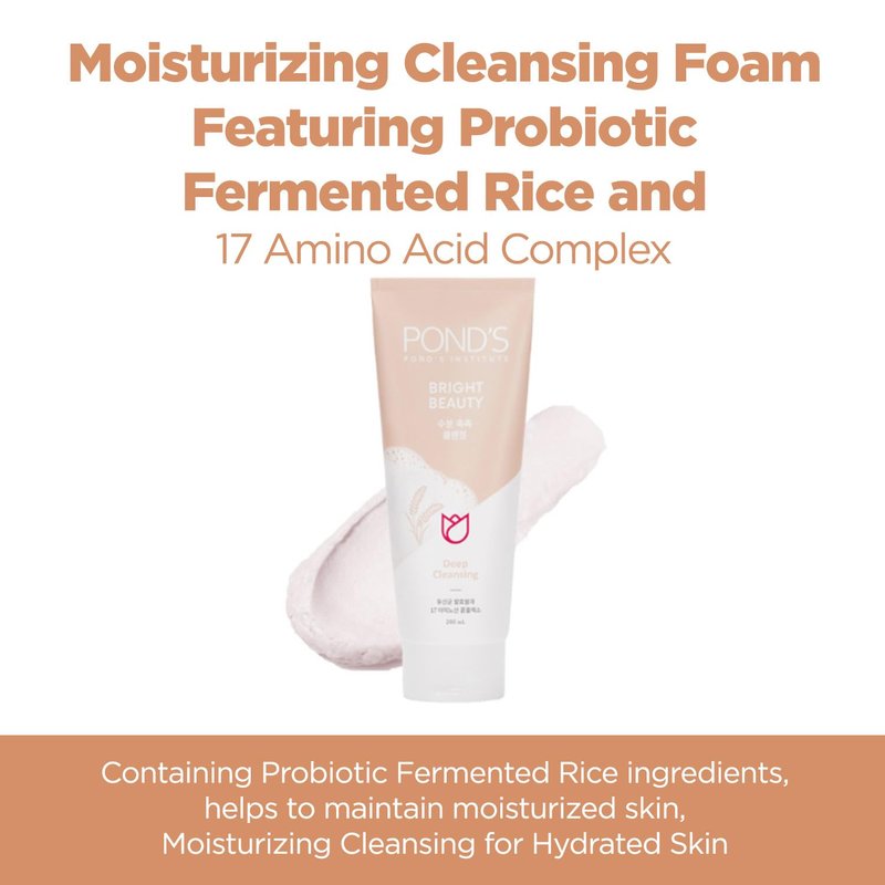 Pond's Bright Beauty Foam Cleanser (Rice) | Gentle Face Wash for Women | Deep Cleansing Formula | Moisturizing & Pure | 17 Amino Acid Complex