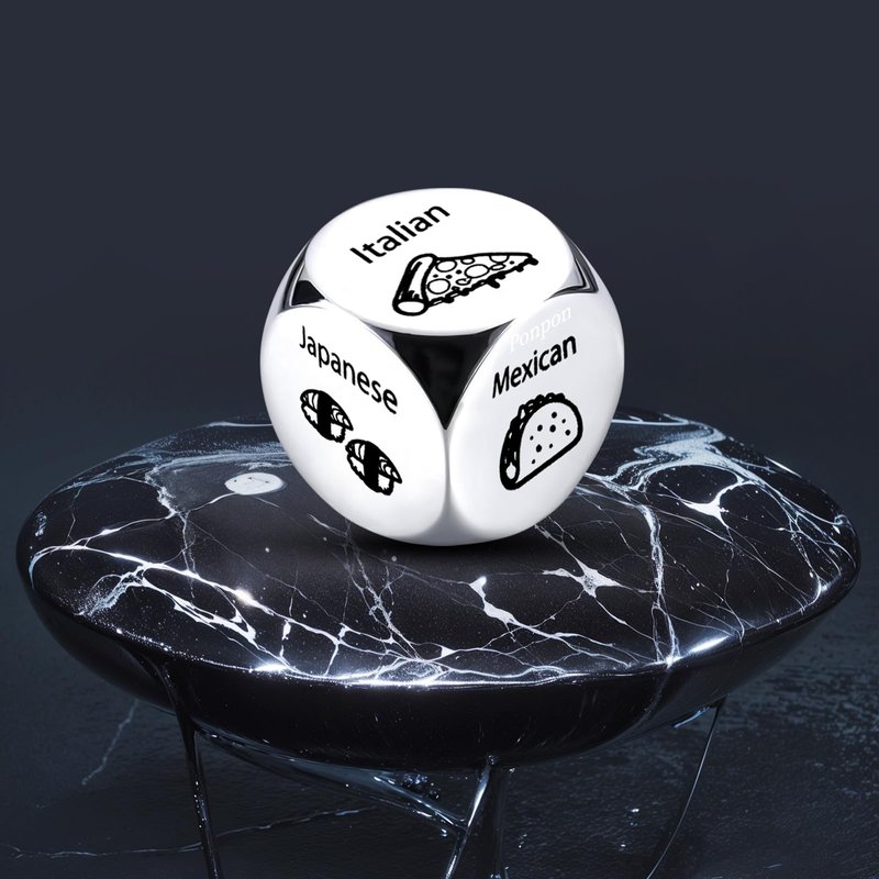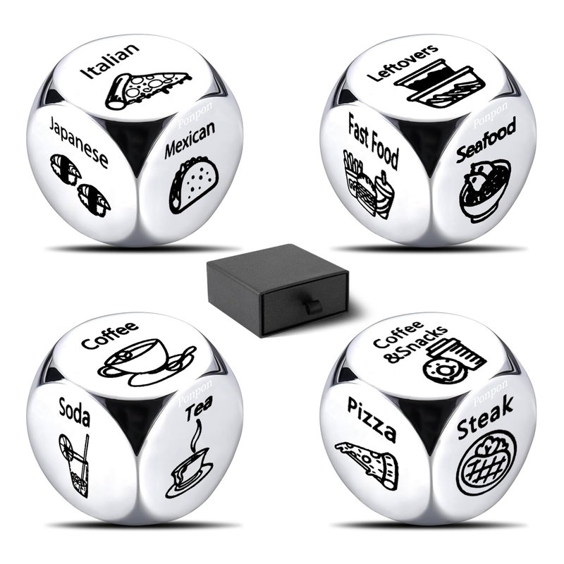 Ponpon 4Pcs Food Decision Dice, Metal Food Dice Game, Funny Gift for Couples Girlfriend Boyfriend Wife Husband on Anniversary Valentines Day Birthday Date Night