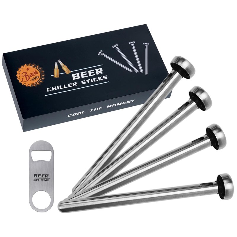 - UNIQUE BEER GIFTS FOR CHRISTMAS: Looking for the perfect gift for men? This innovative high-tech cooling sticks not only ensure that beer always maintains the optimal icy temperature, but it is also an excellent gift choice. This beer cooler gifts includes 2 beer chiller sticks and 1 bottle opener, fits most of standard long neck drink bottles(at least 8.2 inch tall)