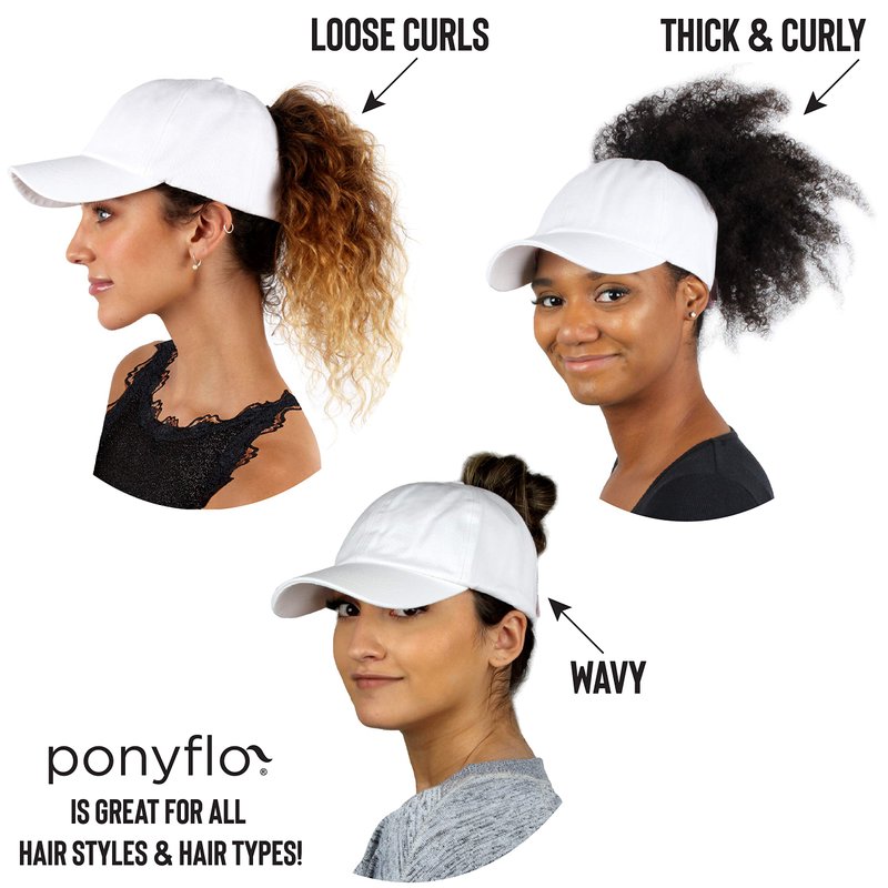 DESIGNED FOR WOMEN: Ponyflo hats are uniquely designed from a woman’s perspective. Its distinctive open back structure and tangle free closure is accommodating for all hair types and is especially loved by women with long hair as well as curly hair. PATENTED DESIGN: Our patented open back construction is exclusively designed for Ponyflo hats. The back opening is structured larger than your basic baseball cap, allowing all hair types to be pulled freely through the hole and will accommodate your hairstyle of choice! TANGLE FREE CLOSURE: In addition to Ponyflo ‘s unique patented design, a special tangle free quality Velcro was used to prevent your hair from becoming tangled and damaged.