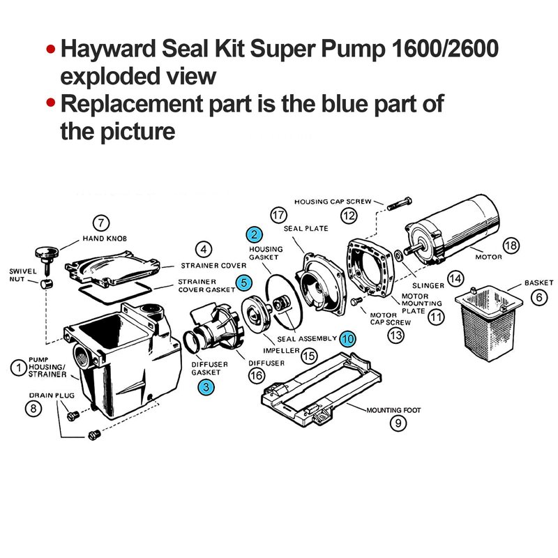 Gasket Seal O-Ring Rebuild Kit For Hayward Super Pump SP2600 SP1600 SP2600X Repair. Generic Replacement For Pump Rebuild Kit 3. Includes the following: