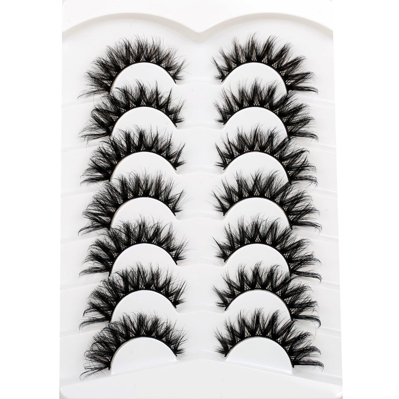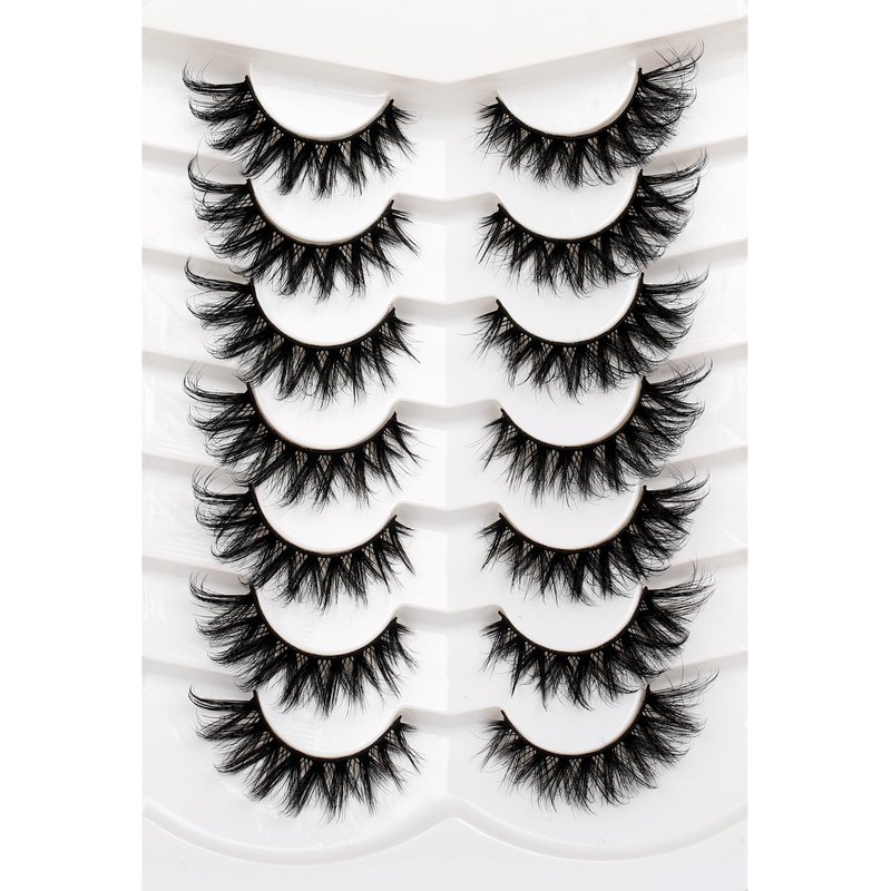 Pooplunch 8D Cat-Eye Fluffy Crossed Faux Mink Lashes 7 Pairs Pack