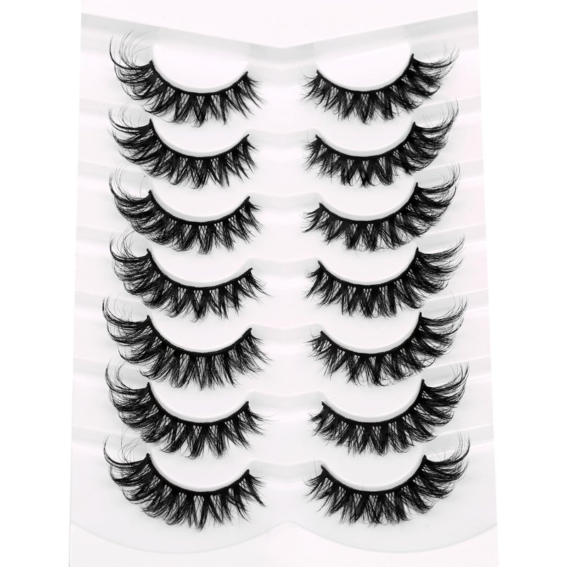 Poolunch False Eyelashes Fluffy Cat Eye Look 8D Crossed Wispy Natural Faux Mink Lashes Fake Eyelashes 7 Pairs Pack