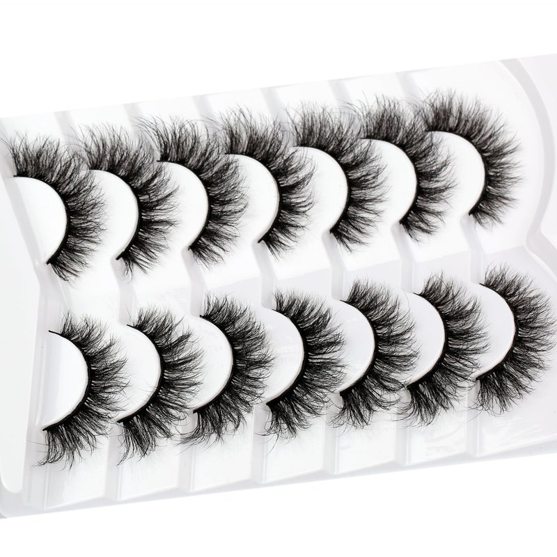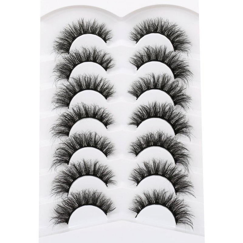 Pooplunch Fluffy Curled Volume Cat Eye Look Faux Mink Lashes 7 Pairs