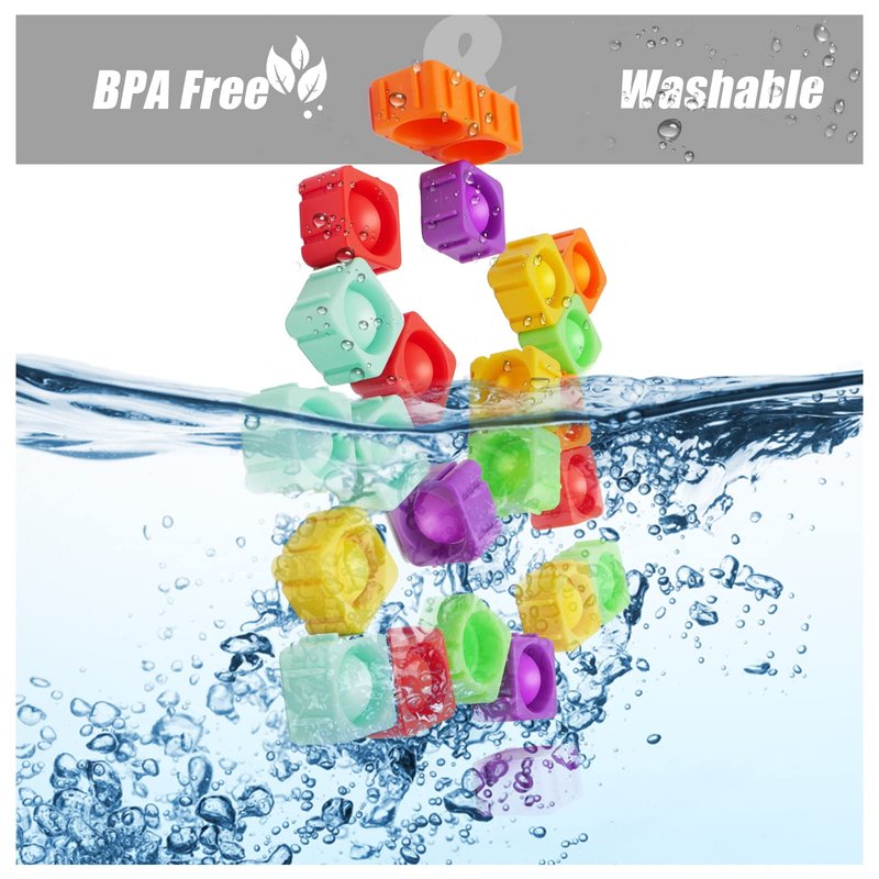 - [Premium and BPA Free] Made of high-quality silicone and food-grade hard shell, BPA free, non-toxic, safe and durable. In addition, the toy is waterproof and can be bathed at any time. And the red-yellow-green rainbow colors can develop children's color recognition.