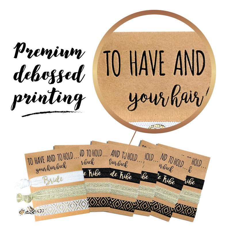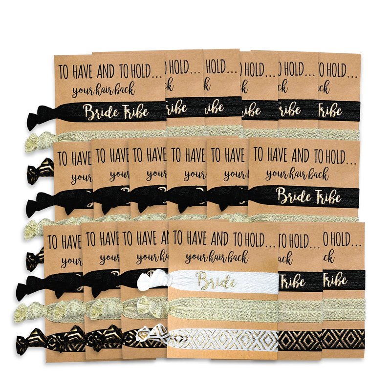 - 18 BACHELORETTE PARTY FAVORS- This bulk pack includes 17 bride tribe hair tie cards and 1 gift for the bride to be. Perfect as bachelorette party favors or bridesmaid gifts!